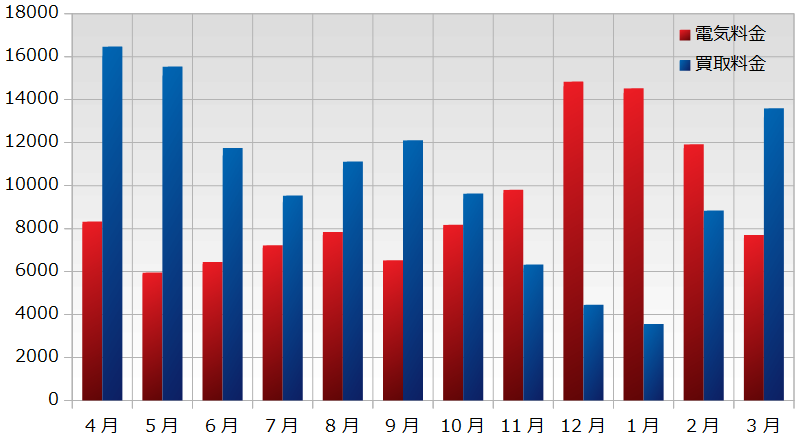 2017年4月~2018年3月まで、1年間の電気料金と買取料金を表にしました。